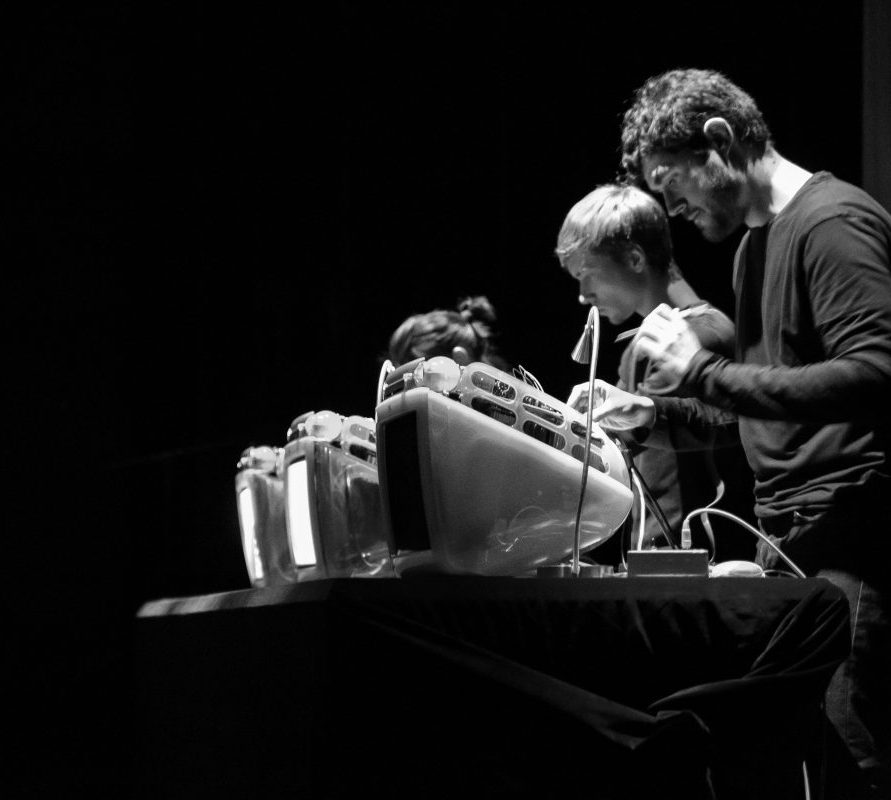 sound and image performance trio for three percussionists, musical instruments made from 1999 iMac G3 computers, hand-held amplification probes The latest version of the instruments use a parasitic sub-circuit […]